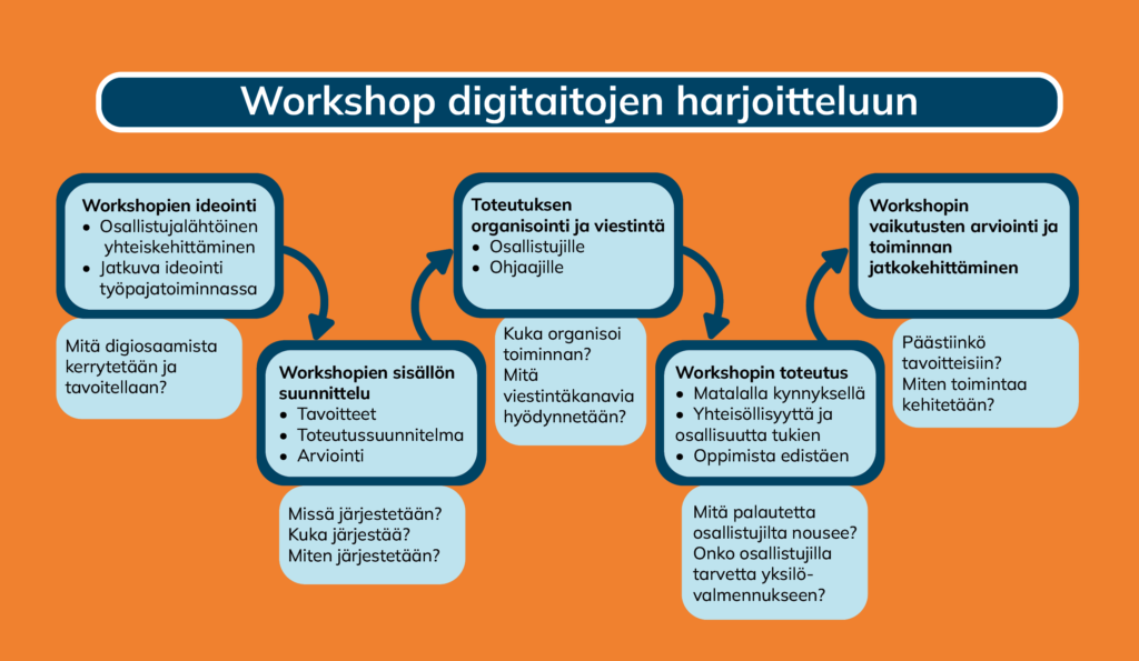 Workshop-koulutukset eli toiminnalliset digitreenit ovat toimintamme keskiössä.